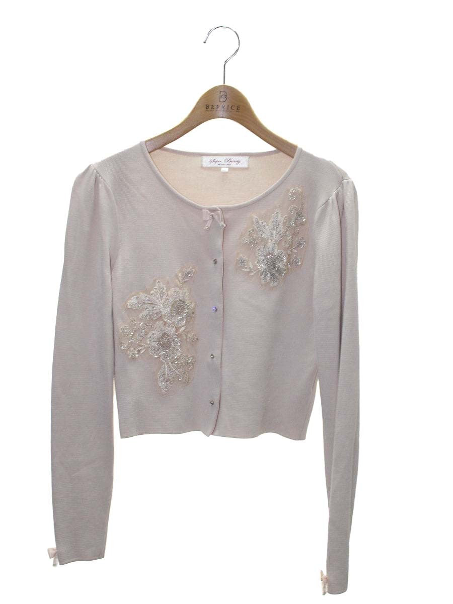 スーパービューティー カーディガン 40 ベージュピンク フラワーモチーフ ビジュー ITYOYDVUXWOG