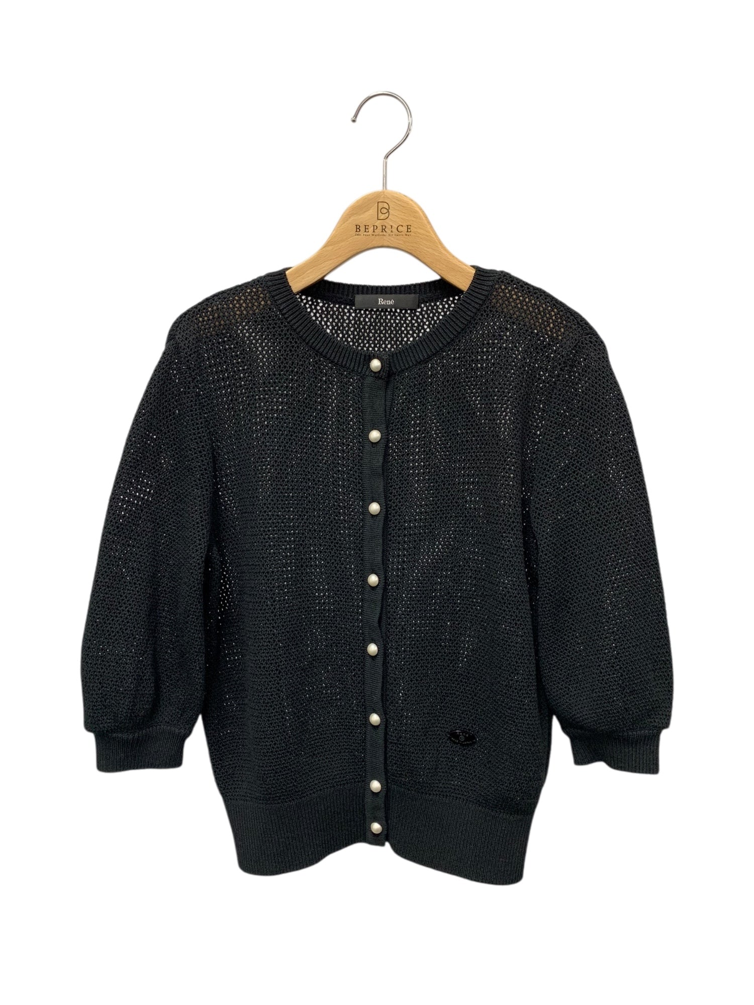 ルネ 5322010 トップス 36 ブラック パールボタン 五分袖 ITYW9JT1RP80