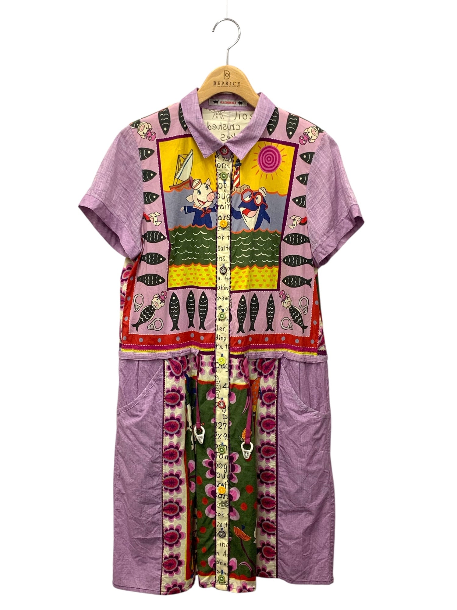 アルベロベロ 215975 シャツワンピース パープル ブタ 魚 イルカ フルーツボタン ITYWD7MT615K