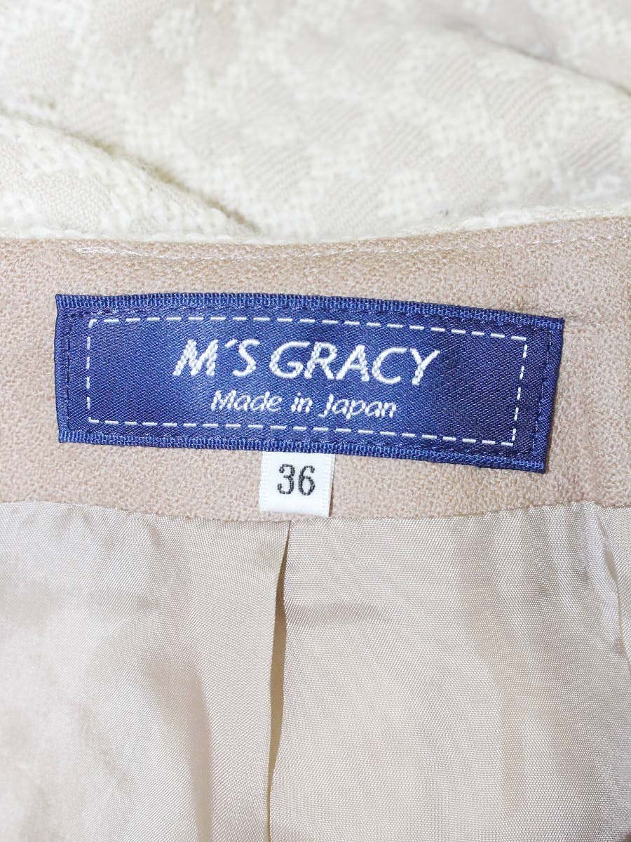 エムズグレイシー 917553 スカート 36 ベージュ フラワーモチーフ ウール フレアー ITYX12GRFGQI