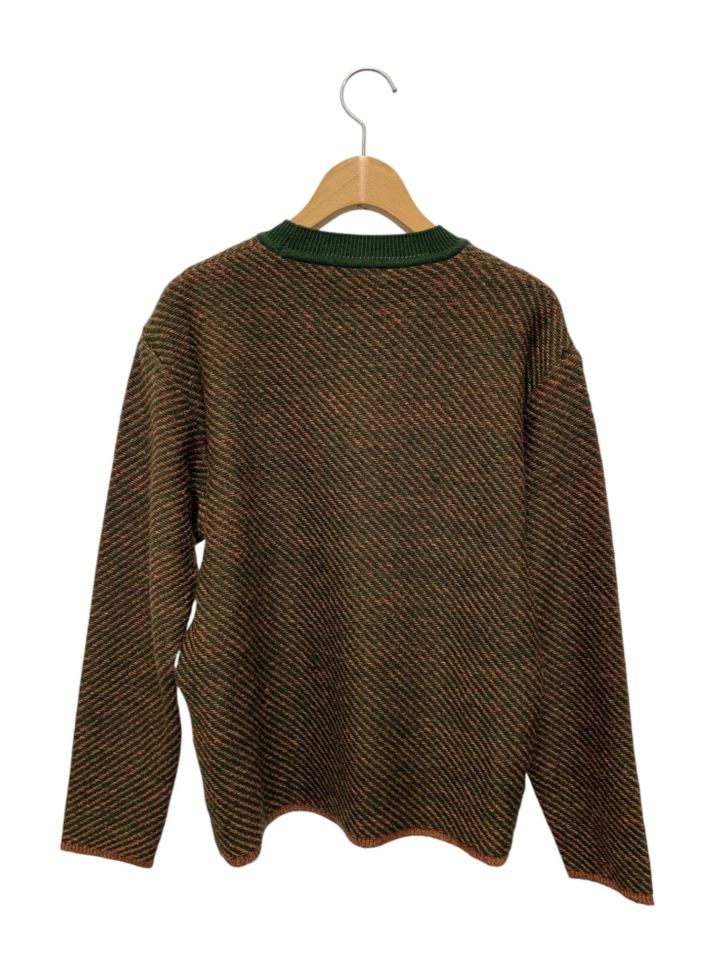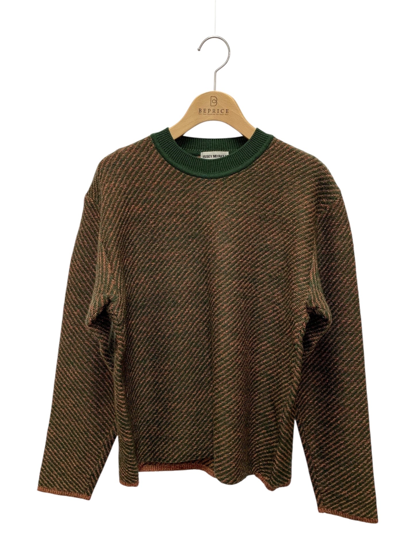 イッセイミヤケメン ME83KN003 クルーネックニット M グリーン レジメンタルストライプ 銀タグ ITZ936FCWXHG 【SALE】