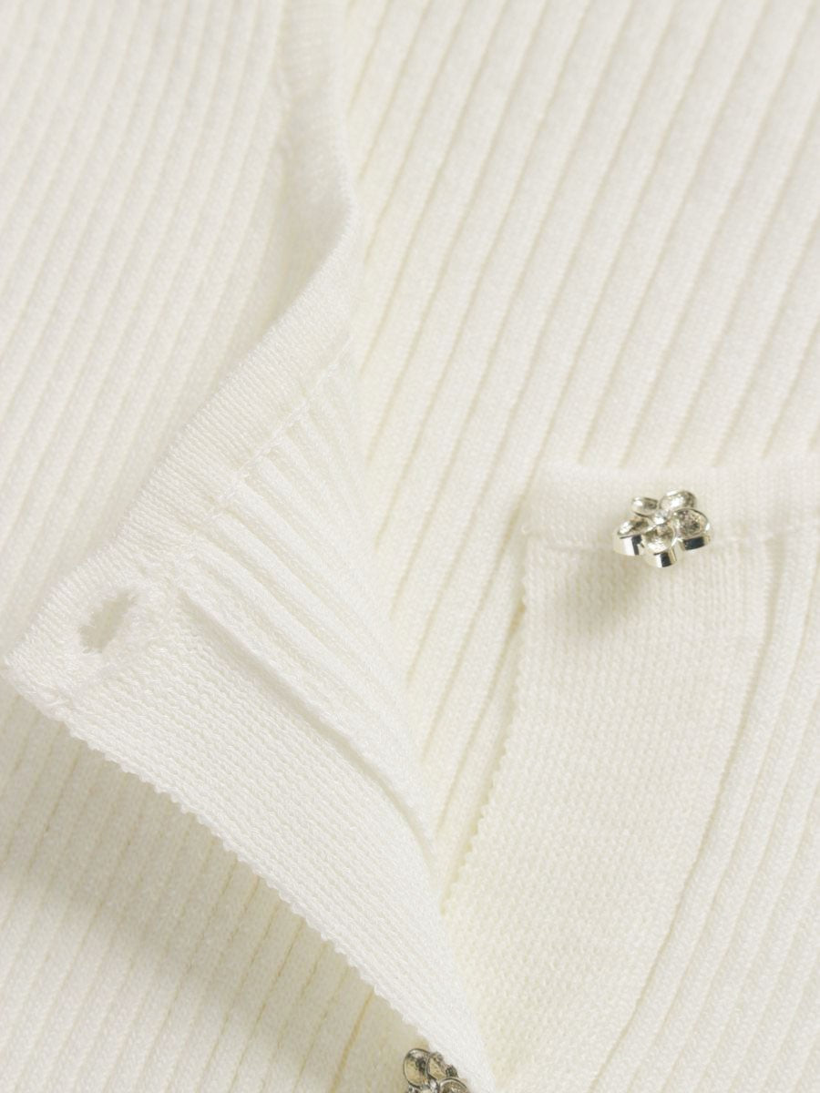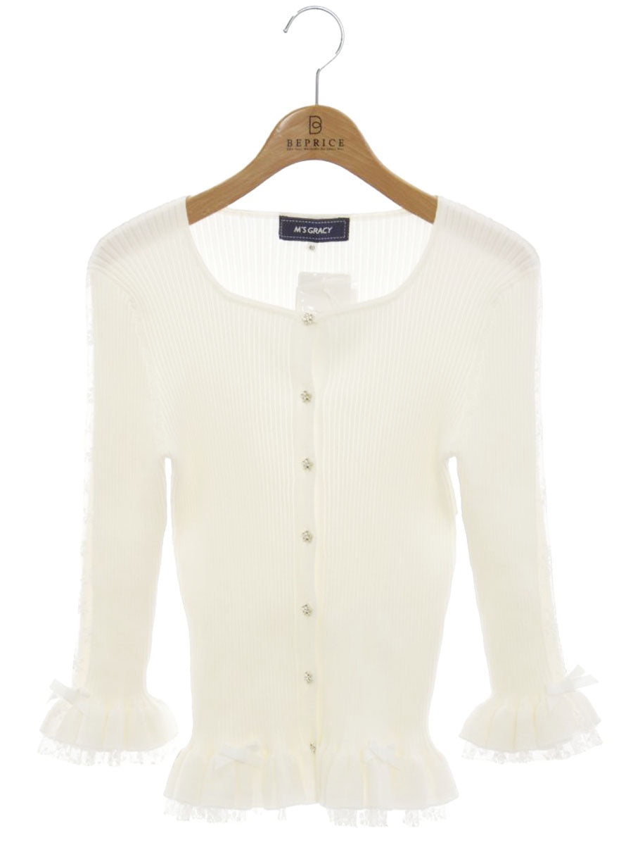 エムズグレイシー 818329 カーディガン 40 ホワイト フリル レース リボン フラワーボタン ITZMR63KGTEH